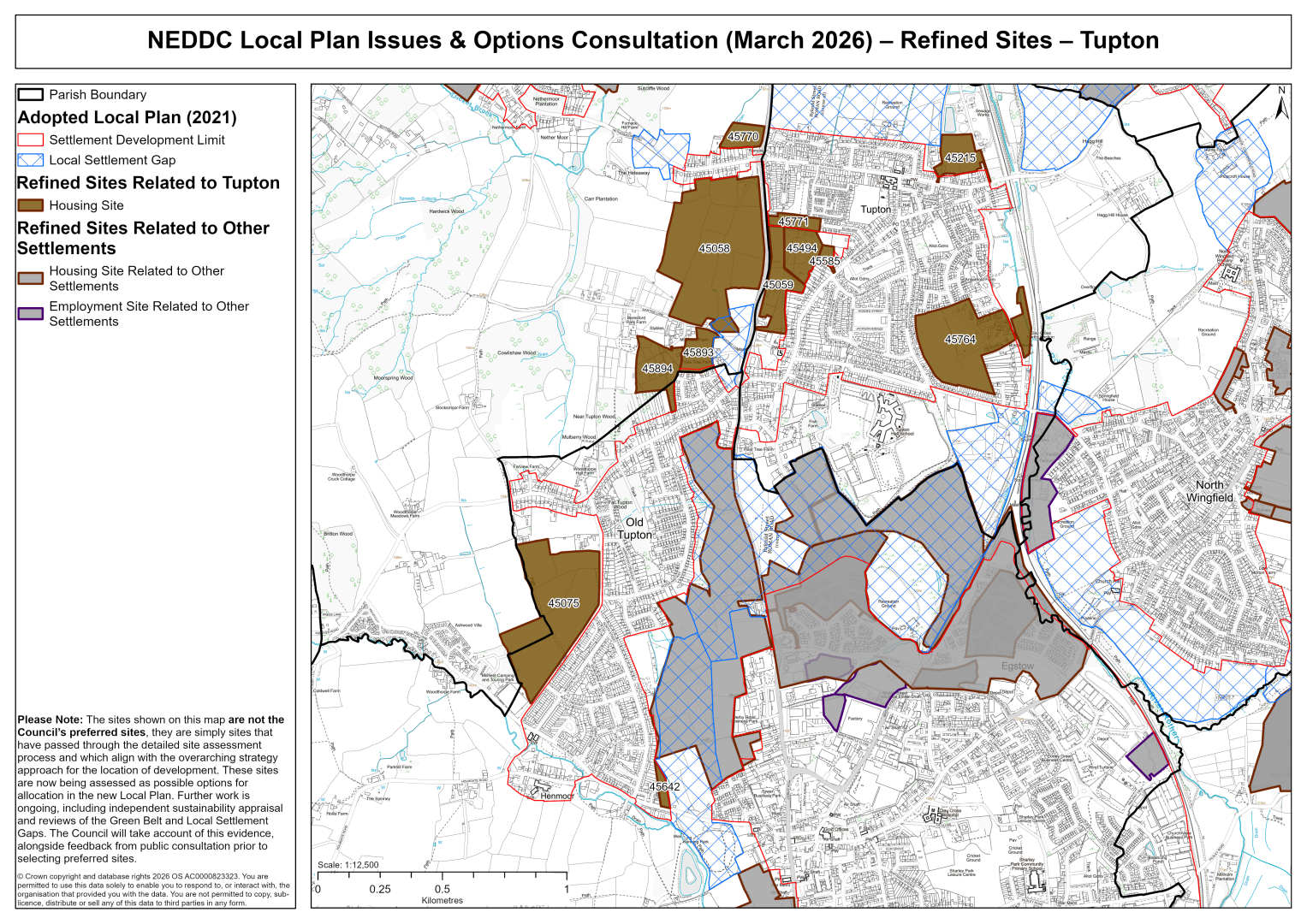 - Development on the site may have landscape impact, connecting Old and New Tupton. However, only 2.5% is designated as a Local Settlement Gap in the current 2014-2034 Local Plan. An updated Local Settlement Gap Review will inform whether this designation is still appropriate in its current form.